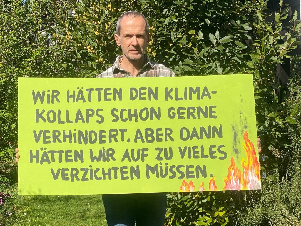 Man muss beides sehen: Ich kann etwas gegen die Klimakatastrophe tun, auf politischer und persönlicher Ebene. Und ich kann auch in den Abgrund sehen, erkennen, dass ein Zusammenbruch auf uns zukommt und mich an diesen Zusammenbruch anpassen, politisch und persönlich.