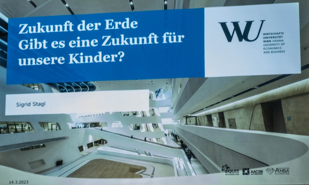 Prof. Sigrid Stagl kam Mitte April 2023 nach Pressbaum und informierte die 100 Besucher*innen über die Bedingungen des Klimawandels und was möglich ist aus wirtschaftlicher und ökologischer Sicht. Hier einige Lichtblicke: